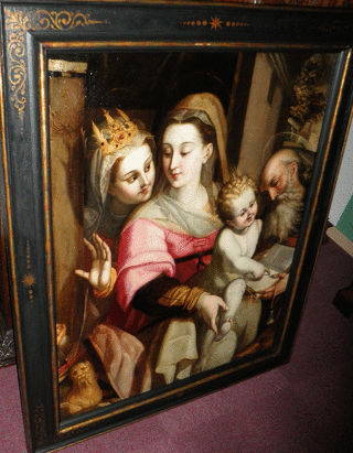 Mary and child Jesus surrounded by St. Helena and St. Anthony of Egypt.