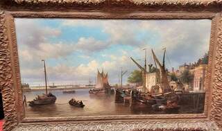 Elias van Bommel 1819-1890, "Quay in Amsterdam"