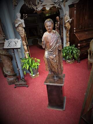 "Holy Apostle" in carved and polychrome walnut including traces from different eras. Work in Southwest France. Period: 2nd half 13th. -94cm. H. (including base): -160cm